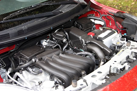 La dirección accionada desde un timón de agradable tacto, es del tipo cremallera y cuenta con asistencia eléctrica, que hace de las maniobras de parqueo algo muy sencillo. En el March, el sistema ofrece sensor de velocidad, que hace que sea más suave a baja velocidad y más duro al aumentar esta. El Motor de cuatro cilindros que , 16 válvulas movidas por un mecanismo de cadena y 1.600 c.c de desplazamiento, un índice de compresión de 9,8 a 1 produce 106HP/5.600 rpm y un torque de 14,50 Kgm/4.000 rpm con un comportamiento impecable y un mínimo nivel sonoro. Este propulsor que utiliza tecnología desarrollada por Nissan con el nombre de “Pure Drive” que optimiza la combustión, aumenta la potencia y el torque y disminuye la emisión de gases contaminantes al incorporar ejes de levas de posiciones variables, conductos de admisión y escape de mayor eficiencia con acelerador electrónico responde muy bien desde bajas revoluciones pero lo brillante de su rendimiento comienza a las 4.000 rpm y no es necesario llevarlo hasta las 5.600 rpm para saber de qué es capaz. En cuanto a consumo y sin entrar en pruebas muy exhaustivas podemos hablar de más o menos 45 Km/galón, que para un automóvil con motor de 1.600 c.c no está nada mal y menos en utilización mayoritariamente urbana.