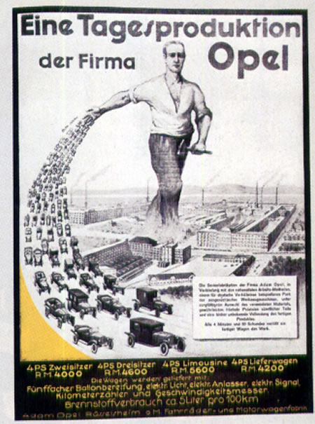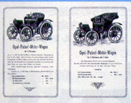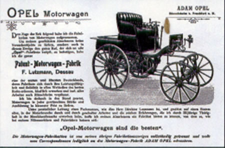 La marca alemana Opel nació en 1862 cuando Adam Opel comenzó a fabricar máquinas de coser. Si éxito fue tan grande que desde 1886 comenzó a fabricar bicicletas en compañía de sus cinco hijos. A estas bicicletas con el tiempo se les montarían pequeños motores, lo que les permitiría producir motocicletas. En 1898 ingresaron al mundo de la fabricación de automóviles. Desde 1929 Opel es propiedad del grupo automotor estadounidense General Motors.